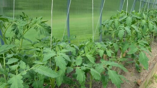 Теплица у меня на огороде установлена поликарбонатная, размер которой 3*8. В теплице выращиваю томаты и на половине средней грядки огурцы. Огурцы второй год растут на шпалере, а вот томаты подвязываю. Расскажу подробнее о своем способе подвязки томатов в теплице. Томаты на грядках в теплице растут в два ряда в шахматном порядке. На одной грядке растет около 30-35 кустов томатов. Площадь посадки зависит от сорта томатов. Формирую куст томатов в 1-2 стебля. И благодаря правильной подвязки в теплице кусты не загущены...