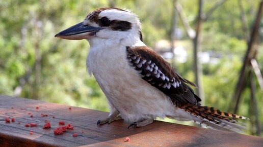 Кукабарра населяет густые эвкалиптовые леса Австралии. Известна она своим странным смехом и пением, похожим на хохот человека. Относится птица к роду зимородков. Это самый крупный представитель из семейства, их иногда ещё зовут гигантами-зимородками. Это пёстро окрашенные хищники, с крепким клювом и цепкими лапами. В природе кукабарры живут, примерно, до 20 лет, а в неволе – и до пятидесяти. Для нормального проживания птицам нужны большие и освещённые помещения. Родиной кукабарр считается юго-восток...
