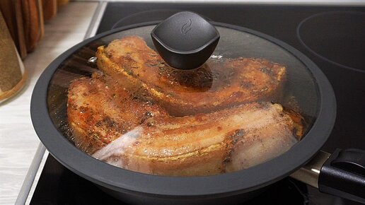Свиная грудинка, вареная в пиве на сковороде — рецепт с соевым соусом.