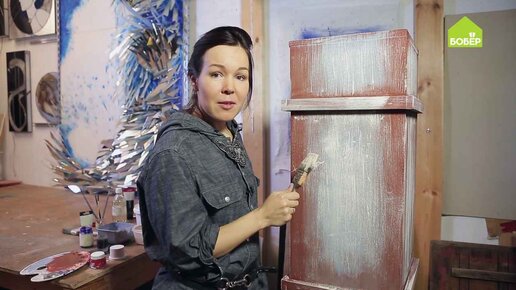 Такая технология покраски поможет вам преобразить любую деревянную мебель! Загрунтуйте поверхность деревянного ящика, используя акриловый грунт в баллончике. Пока грунтовка сохнет, приготовьте колеры. Основу всех красок составляют белила. Базовый рецепт покраски в три слоя: основной тон, тени и блики на основе одного цвета. В нашем случае художник хочет сделать более сложный вариант, взяв в качестве основного цвета фисташковый и добавив к нему контрастный терракотовый (тени), а также бело-золотистые блики...