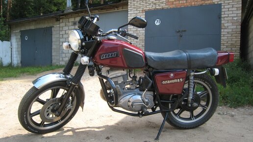 Иж Планета-5 это легендарный Советский мотоцикл среднего класса являлся мечтой каждого мальчишки. Производился на Ижевском Машиностроительном Заводе до 2008 года. ИЖ Планета -5 мотоцикл среднего класса предназначенный для езды по дорогам с различным покрытием. Двигатель двухтактный одноцилиндровый с воздушным охлаждением. В данном случае установлены литые диски и дисковые тормоза, а так же мотоцикл был полностью восстановлен потому как находился в плачевном состоянии...