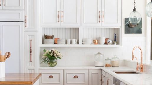 Клен часто используется для изготовления современных кухонных шкафов из-за его светлого цвета и долговечности древесины. Если ваш дом и кухонный декор больше склоняются к антикварному стилю или стилю "потертый шик", чем к гладкому и современному, то шкафы из белого клена с антикварным покрытием лучше впишутся в ваш стиль, чем обычные кленовые шкафы. В зависимости от того, какой образ вы хотите создать, вы можете либо остановиться на покраске их в антикварный белый оттенок, либо добавить финишный слой морилки, чтобы создать дополнительное впечатление и возраст...