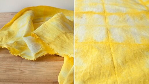 Сегодня у нас классная инструкция по окрашиванию ткани в красивый желтый цвет при помощи куркумы. Все необходимое: Этим нехитрым методом вы можете покрасить шелковый платок, наволочки на подушки, футболку и что угодно еще. Мы решили сделать скатерть и окрасить ее неравномерно. Для этого нам понадобилось свернуть ткань. Если вы хотите покрасить вещь целиком в один тон, то сворачивать ее не нужно. Шаблон складывания может быть любым. Мы сложили ткань в длинную полосу, а затем, загибая края, сделали из нее что-то вроде гармошки...