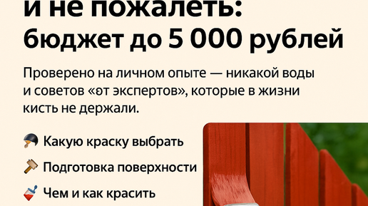 🏡 И немного про эстетику Честно: я думал, забор — дело на пару часов. Купил краску, взял кисть — и готово. Ага, как же. Через неделю руки отваливаются, полдвора в пятнах, а краска с первого дождя пошла пузырями. Вот что реально работает и не превращает дачу в ад. 🎨 Какую краску выбрать Если забор деревянный — только акриловая краска по дереву для наружных работ...