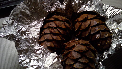 Осень приходит, кедровые шишки поспели. Если вы стали счастливым обладателем десятка красивеньких, смолистых шишек, и вам уже не терпится их погрызть, вам может пригодиться мой лайфхак по их варке. Да это и не варка вовсе. Варить шишки - это значит безнадежно вымазаться в смоле и выбросить любимую кастрюлю. Если кастрюлю не жалко - просто варите. Если жалко - вот пошаговая инструкция. Понадобится: шишки, фольга. Всё. Больше ничего не надо. Шаг первый. Заворачиваем шишки в фольгу. Можно по одной, можно сразу по две-три...