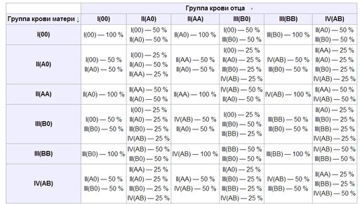 Группа крови ребёнка по группе крови родителей. Возможны ли исключения?
