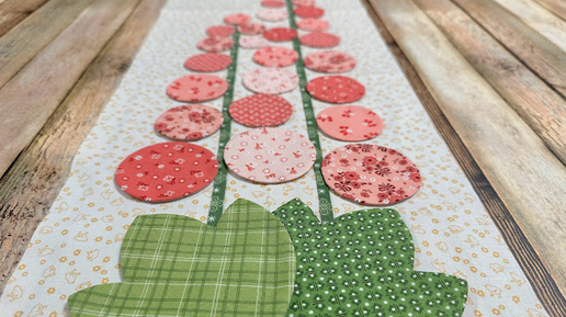 Обычно аппликация пришивается или вручную петельным швом, например, или на машинке простым или декоративным швом. А вот эти аппликации совершенно необычные за счет того, что они состоят из двусторонних элементов и их можно сделать еще и объемными для каких-то элементов. Из таких элементов можно сшить такое панно: Вот так блоки можно использовать на панно: Как их делать рассмотрим на примере блока справа: Сначала шьют круглешки: Стебли шьют так, чтобы шов на панно был внутри; Присоединяем стебли и кружочки: Ширина этого блока составляет 19 см, если Вы решите его повторить...
