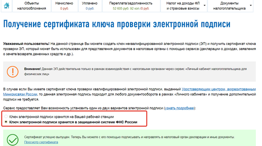 Бесплатно можно получить только неквалифицированную электронную подпись для связи с налоговой. Ее можно оформить в своем "личном кабинете" физического лица на сайте налоговой в разделе «Профиль». Теперь я распишу, как пошагово ее получить: 1. Необходимо перейти во вкладку «Получение сертификата ключа проверки электронной подписи». 2. Выбрать хранилище ключа ЭЦП. Есть два варианта: ключ может храниться на компьютере пользователя или в защищенном виртуальном хранилище налоговой. 3. Далее нажать на кнопку «Сформировать», вписать персональные данные, придумать надежный пароль...