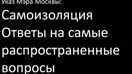 Кто должен оставаться дома, как получить выплаты и лекарства: ответы на популярные вопросы о самоизоляции Согласно поправкам к указу Мэра Москвы с 26 марта по 14 апреля к тем, кто обязан соблюдать домашний карантин, добавляются новые категории населения. Оперативный штаб по контролю и мониторингу ситуации с коронавирусом в Москве подготовил пояснения по этой теме. Кто должен находиться в режиме самоизоляции? С 26 марта до 14 апреля в Москве вводится обязательный домашний карантин для жителей, которым больше 65 лет или у которых есть хронические заболевания...