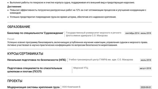 Пример резюме матроса 2025 - Как составить