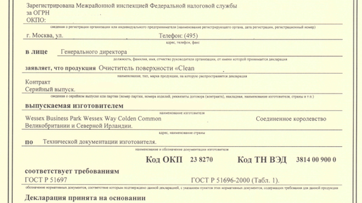 Декларация соответствия по ГОСТ Р