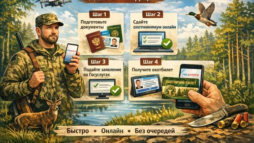 Охотничий билет через Госуслуги в 2026: пошаговая инструкция (без очередей)