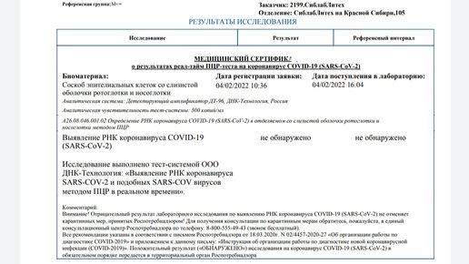 РЕЗУЛЬТАТ ПЦР - ОТРИЦАТЕЛЬНЫЙ