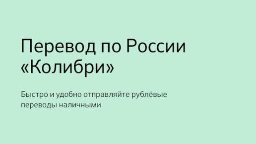 Перевод «Колибри» по России в Сбербанке