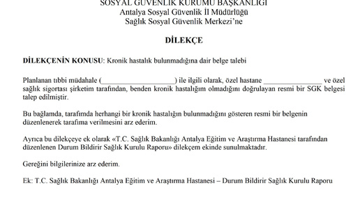 Если вы планируете операцию в Турции — как в государственной, так и в частной клинике — от вас потребуют справку на бланке SGK об отсутствии хронических заболеваний.