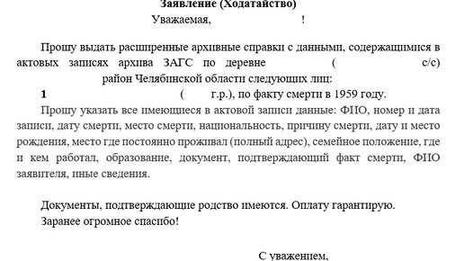 Если Вы решили, не откладывать составление семейного дерева, но боитесь сделать что-то не так, держите подробное описание по запросу для получения расширенной справки о смерти. В предыдущих записях я написала, куда необходимо обратиться и что для этого обращения понадобится (для ЗАГС или для МФЦ). Сегодня давайте определимся, что скрывается за фразой «запрос в ЗАГС». Предположим, что у Вас нет документов на Вашу бабушку по отцу, но Вы очень хотите их найти. Ваш паспорт и свидетельство у Вас есть...