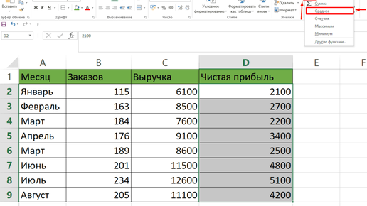 Как найти среднее арифметическое число в таблицах Excel