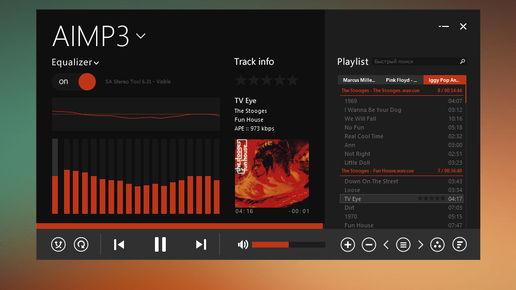 Я уже 5 лет использую один и тот же плеер AIMP. Возможно кто-то сейчас набежит в комментарии со своими фубар 2000 , винампами и всем таким , но я предпочитаю когда программа не только быстро работает , но и выглядит прикольно ...