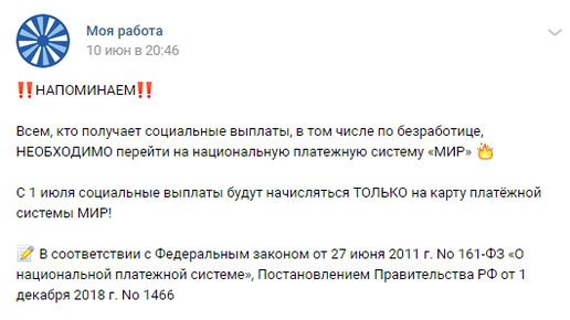 Пособие по безработице теперь на карту "Мир" - узнала случайно..