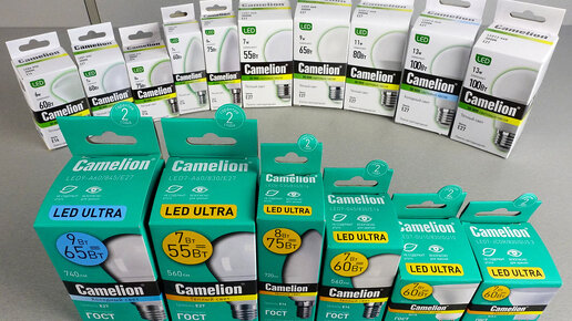 Я купил и протестировал 16 лампочек Camelion двух серий. Отличия между сериями оказались не столь очевидны, как предполагалось. Раньше было всё просто: были лампы Camelion LED Ultra в зелёных коробках с индексом цветопередачи CRI(Ra) 80+ и с ними всё было хорошо (за исключением некоторых ламп G4 и G9 с пульсацией 100%) и была эконом-серия BasicPower в белых коробках с CRI(Ra) 70+. Теперь цвет зелёных коробок изменился и на них появилась большая надпись "Соответствует ГОСТ", при этом на упаковке...