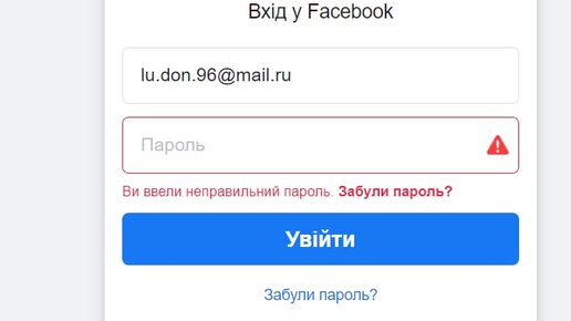 Вход в аккаунт Фейсбук - неправильный пароль