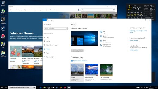Тема Windows — это сочетание фонов рабочего стола, цветов окон и звуков. Темы рабочего стола впервые были представлены в Windows 7 и также входят в состав Windows 10. Как говорилось выше, тема рабочего стола может включать в себя несколько обоев а также содержать звуковые эффекты, значки, заставки и цветовую схему окон. В настоящее время существуют сотни красивых тем, доступных для загрузки из магазина Windows Store, а также из официальной галереи персонализации Windows. Остается только скачать и...