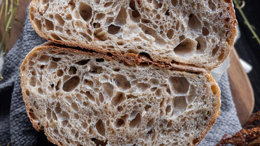 На первый взгляд хлеб может выглядеть вполне симпатично. Гребешок раскрыт, хлеб пропечен, поры на месте, но что-то все равно не так. Хлеб тяжелый. Чаще всего причина в слабой закваске, т.е. в низком содержании в ней дрожжей. При этом сама закваска может выглядеть вполне живой, но в замесе ведет себя не активно. Еще одна причина – недоброд в массе и на расстойке. Если закваска активная, то увеличение времени брожения решит проблему, хлеб станет более воздушным и более легким, вкус при этом станет еще более интересным, без лишней кислотности...