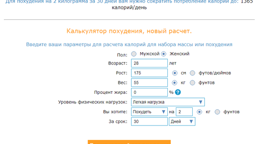 Доброго времени суток. Рассчитать нужный вам калораж очень просто. В интернете есть множество калькуляторов похудения. Там вы можете ввести свои данные и получить результат. Например я вешу 55 килограмм сейчас и хочу похудеть на 2 килограмма за месяц, этот калькулятор выдает мне такую инфу: Мне нужно потреблять 1365 калорий в день или меньше, 30 дней подряд, при легкой нагрузке . Сейчас я употребляю около 1800, поэтому похудеть не могу. Если бы я прибавила ко всему этому среднюю нагрузку, например...