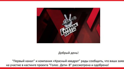 Заявка на кастинг моей ученицы 11ти лет была подана еще в августе, и каково же было мое удивление, когда на почту пришло письмо с приглашением, в котором сообщалось, что с нами свяжутся в скором времени, и нужно выбрать день и время. Честно говоря, я уже и не надеялась, так как вокруг все только и говорили, что попасть на шоу Голос можно только с деньгами и связями. В анкете помимо фото были ссылки на аудио и видео. Конечно записи были сделаны в профессиональной студии еще в феврале. Тогда мы это делали "для себя" и на радость ученице...
