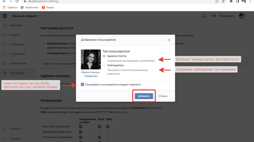 Как добавить таргетолога в рекламный кабинет ВК