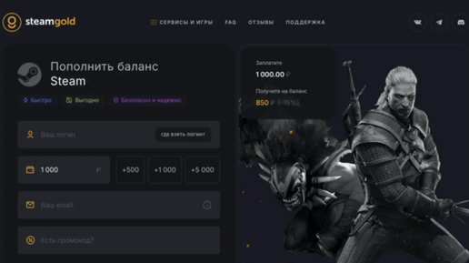 Ищете способ пополнить стим? SteamGold — один из сервисов, который предлагает эту услугу. Выбор подобных площадок огромен, и каждая обещает выгодный курс и мгновенное зачисление средств, но разобраться, кому действительно можно доверять, а кто скрывает подводные камни, бывает непросто. Как показывают данные, включая недавнюю статью на РБК, посвященную игровой индустрии, на сегодняшний день наиболее удобным, безопасным и выгодным способом пополнения игрового счета остается использование проверенного платежного сервиса...