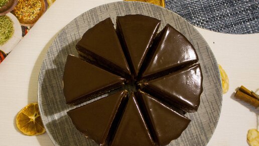 Если тортик покрыт шоколадной глазурью, подогрейте нож под горячей водой несколько секунд, протрите насухо салфеткой и сделайте разрез на торте. После этого помойте нож и повторите всё заново...
