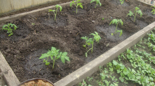 Время сейчас такое! Всё просится в землю. Вроде бы посадили всё основное, но сколько всякой мелочёвки! Начали с помидоров. Мои подмёрзшие стоят пока не тронутые, вроде бы стволик жив. Полила сегодня и снова накрыла. А это десяток посадили новых, купили на рынке.100 рублей десяток, ну нам больше и не надо на первое время, а потом взойдут свои поздние и пойдут на заготовки. Но мы поставили дуги, укрыли , а потом уж колпаки поставили. Научены горьким опытом. Чеснок уже полола от всходов кохии, но снова шапки её всходов, вот уж плодовита! Но плоскорезом быстро с нею разделалась...