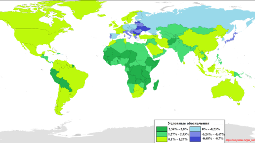 Прогнозируется, что население мира за 2020 г. увеличится на 1,1% (табл. 1). Традиционно наибольший прирост характерен наименее развитым странам мира (2,6%). Этот показатель выше среднемирового в развивающихся странах. Нулевой коэффициент естественного прироста населения предполагается в развитых странах. Коэффициенты естественного прироста населения стран мира разного типа в 2020 г. В условиях преобладания в Африке наименее развитых стран здесь отмечается самый высокий естественный прирост населения в мире (2,6%) (табл...