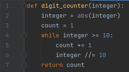 Вводится последовательность из N целых чисел. Определить число с наибольшим количеством цифр и вывести на экран соответствующее сообщение. Для подсчёта количества цифр реализуйте функцию. 1-я часть: реализация функции Поскольку число может быть отрицательным, находим его абсолютное значение с помощью функции abs. Любое число состоит хотя бы из одной цифры. Поэтому сразу присваиваем переменной count единицу. Так как мы уже учли одну цифру, то низводить число будем до 10, а не нуля. На каждом проходе по телу цикла мы удаляем одну цифру числа с помощью целочисленного деления на 10...