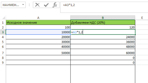 Формула расчета НДС в Excel