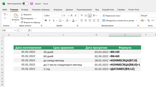 Для расчета срока годности можно использовать самые разные формулы. В показанном примере в столбце Е используются следующие формулы: Объяснение В Excel даты — это просто порядковые номера. В стандартной системе дат для Windows, основанной на 1900 году, где 1 января 1900 года — это число 1...