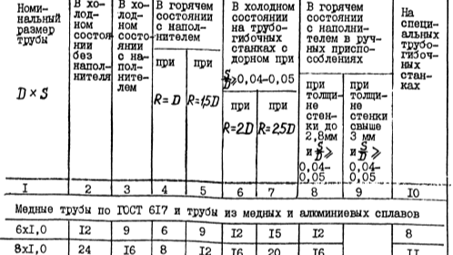 Радиусы и углы гиба труб по РД 24.203.03-90.