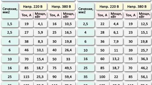 Подбор сечения кабеля по его мощности