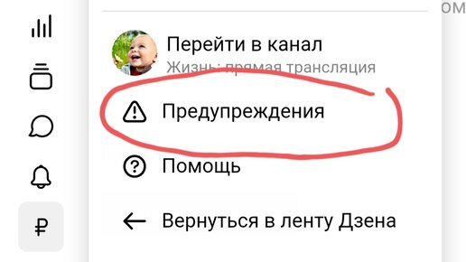 Как посмотреть "предупреждения" каналу на Дзен с телефона