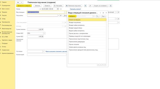 Какие бывают операции в 1с?