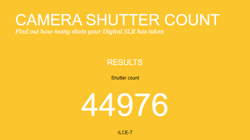 Для проверки реального пробега зеркальный фотоаппаратов производства Nikon, Pentax, Samsung, Sony и некоторых моделей Canon есть удобный online-сервис www.camerashuttercount.com. Достаточно загрузить на сайт снимок с камеры в формате JPEG или RAW. После загрузки, Camera Shutter Count сразу покажет счетчик сделанных кадров и модель камеры. Подходит для Nikon D2H, Nikon D2Hs, Nikon D2X, Nikon D2Xs, Nikon D3, Nikon D3S, Nikon D3X, Nikon D4, Nikon D4s, Nikon Df, Nikon D40, Nikon D40X, Nikon D50, Nikon...