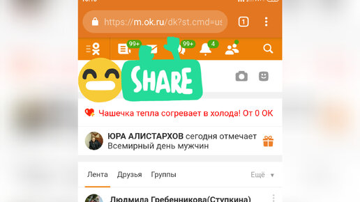 Ищем ссылку на свой аккаунт в Однокласниках на смартфоне.