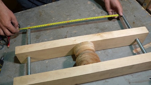 Такое приспособление будет полезным для склеивания широких заготовок, приклеивания шпона или склеивания заготовок из нескольких слоёв. Кроме того это устройство может быть использовано как столярные тиски. Достаточно закрепить его струбцинами к столу или верстаку. Для изготовления таких тисков понадобится два бруска, пара резьбовых шпилек, шайбы и гайки к ним. Размеры брусков могут быть достаточно произвольными в моём случае были использованы обрезки березового щита 85х600 мм. и 40 мм толщиной. В один брусок будут вклеиваться резьбовые шпильки на глубину 30 мм...