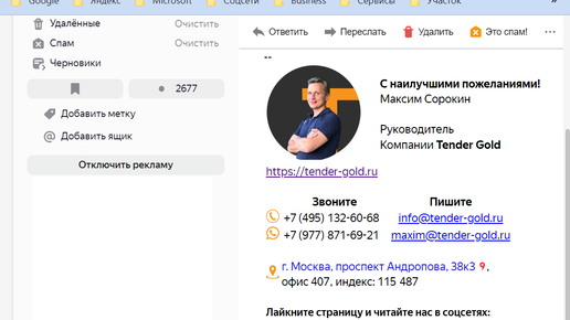 Правильная деловая подпись в конце письма логически завершает электронное сообщение, предоставляет контакты для комфортного взаимодействия, повышает доверие к отправителю и персонализирует продажи. В статье рассказываю о структуре правильной электронной подписи, на примере компании Tender Gold показываю как добавить подпись в почтовых программах и CRM Битрикс24. Структура деловой подписи электронной почты Структура деловой подписи компании Tender Gold включает в себя: В завершающей фразе не стал использовать канцеляризм “С уважением”...