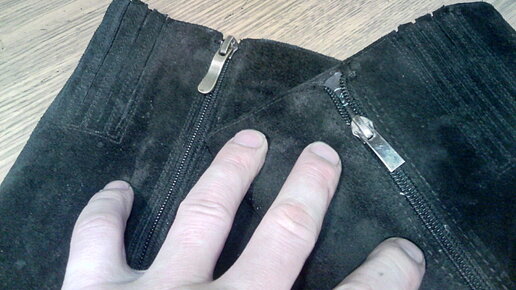 Здравствуйте, дорогие читатели! В продолжение поста Что нужно знать о молниях. Давайте сегодня поменяем собачку. Зачастую замена молнии полностью не требуется. Как в этом случае - вышла из строя молния и рассыпалась собачка, молнию поменяли. Теперь нужно поменять собачку на втором сапоге. Для этого мы разжимаем ограничители сверху молнии и снимаем их. Затем снимаем старую собачку. Сравниваем её с новой по нижней части. Они должны быть одинакового размера. Приподнимая стопор, ставим на молнию новую собачку...