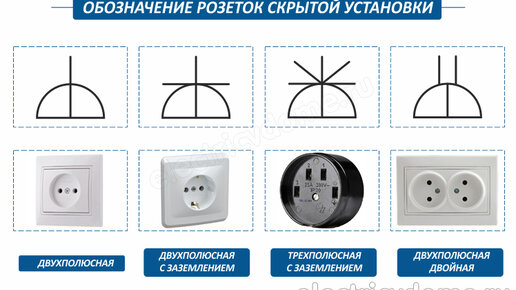 Обозначение розетки на схеме: с заземлением, с крышкой, интернет