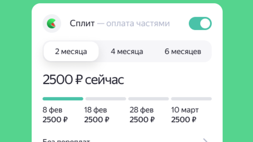 оплату частями или сразу полностью. Сплит (от английского split —