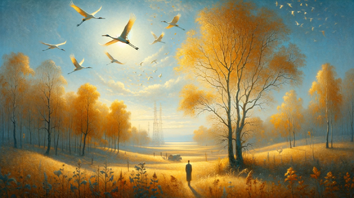С широким месяцем над голубым прудом. Стою один среди равнины голой,