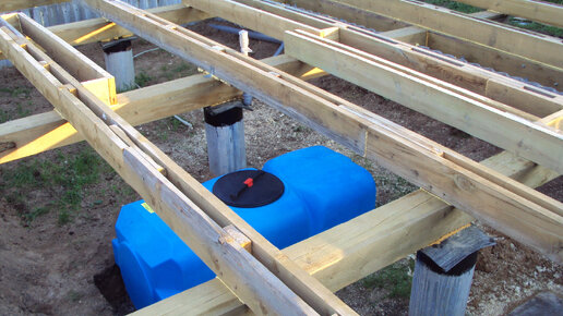 После отливки фундаментных столбов решил дополнительно поднять уровень чистого пола ещё на 300 мм. Из оцинковки свернул гильзы диам. 300 мм, установил, заармировал со столбами и залил цем.песч. раствором в соотношении 1к 2...